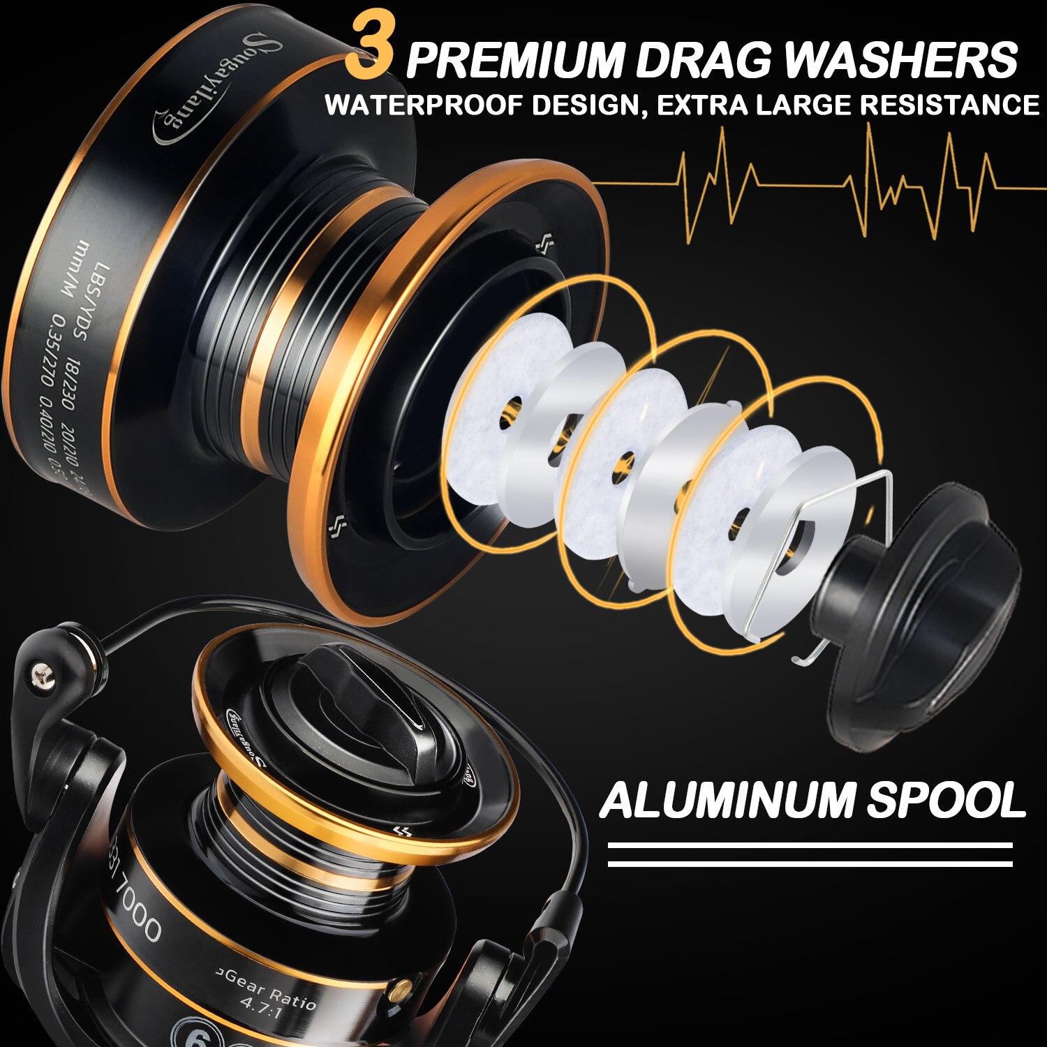 3. Aluminium spool with high-tensile gear.