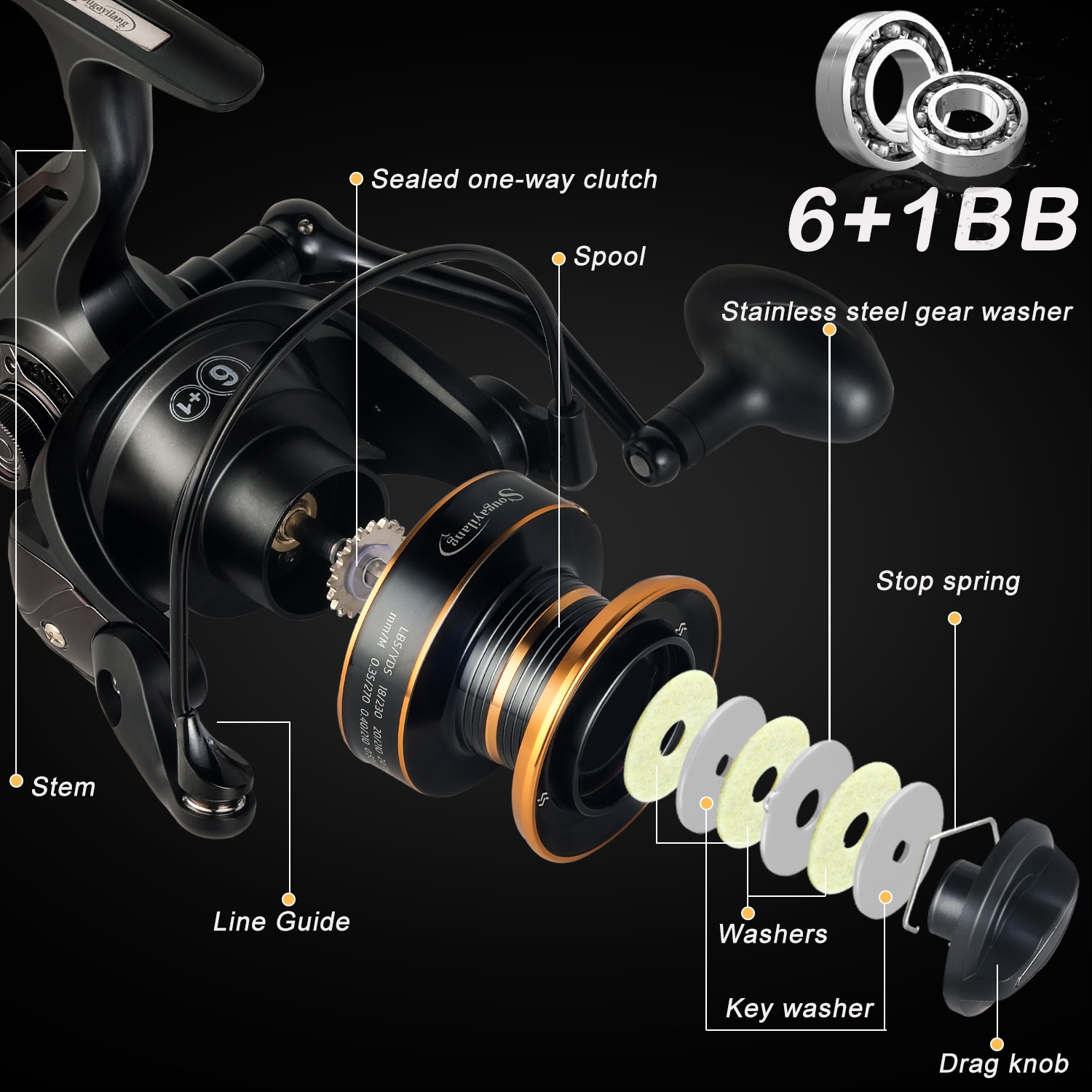 2. 6+1BB pieces of ball bearing plus one-way clutch, gear ratio up to 5.5:1/4.7:1